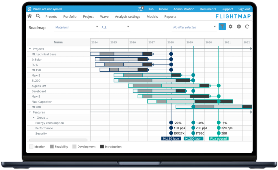 Flightmap provides a clear portfolio overview, ensuring research and development align with long-term business objectives. By prioritizing high-impact projects and streamlining strategic decisions, organizations can innovate effectively and respond faster to market changes, gaining a competitive edge.